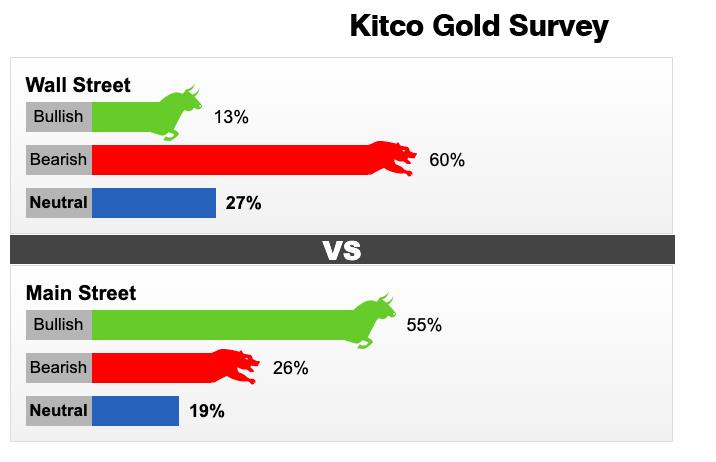 Mặc dù Phố Main vẫn lạc quan về vàng nhưng sự quan tâm đến kim loại quý này rõ ràng đang suy yếu. Việc tham gia khảo sát trực tuyến tuần này đã ở mức thấp nhất kể từ cuối tháng 11/2019.