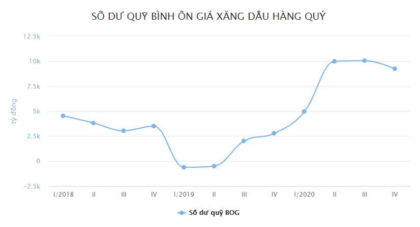 Với chênh lệch trích lập - sử dụng như trên, tổng số dư quỹ bình ổn giá xăng dầu đến cuối năm 2020 đạt 9.235 tỷ đồng, giảm hơn 800 tỷ đồng so với mức cao kỷ lục từng ghi nhận được hồi cuối quý III/2020.