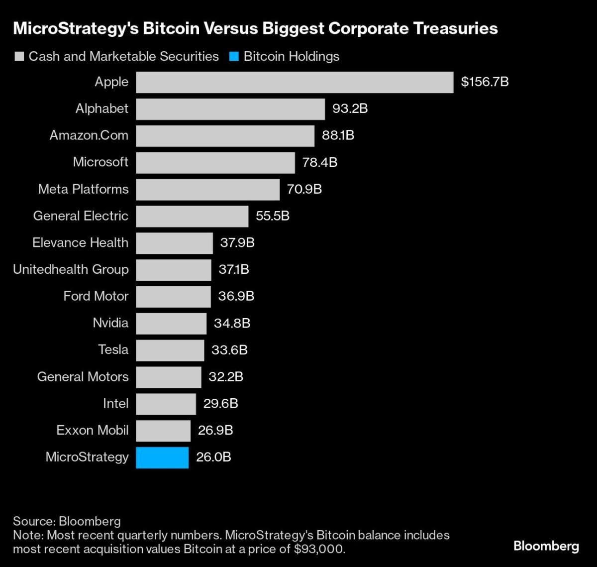 Hiện nay, MicroStrategy đang nắm giữ khoảng 26 tỷ USD giá trị Bitcoin, vượt qua cả những công ty hàng đầu như IBM, Nike và Johnson & Johnson về giá trị tiền mặt và chứng khoán khả dụng. Với chiến lược này, MicroStrategy hiện chỉ xếp sau một số ít công ty như Apple và Alphabet về quy mô tài sản tài chính trong kho bạc doanh nghiệp. Quyết định này của Saylor, dù được đánh giá là không chính thống, đã chứng minh được hiệu quả đáng kinh ngạc trong việc tạo giá trị cho cổ đông.