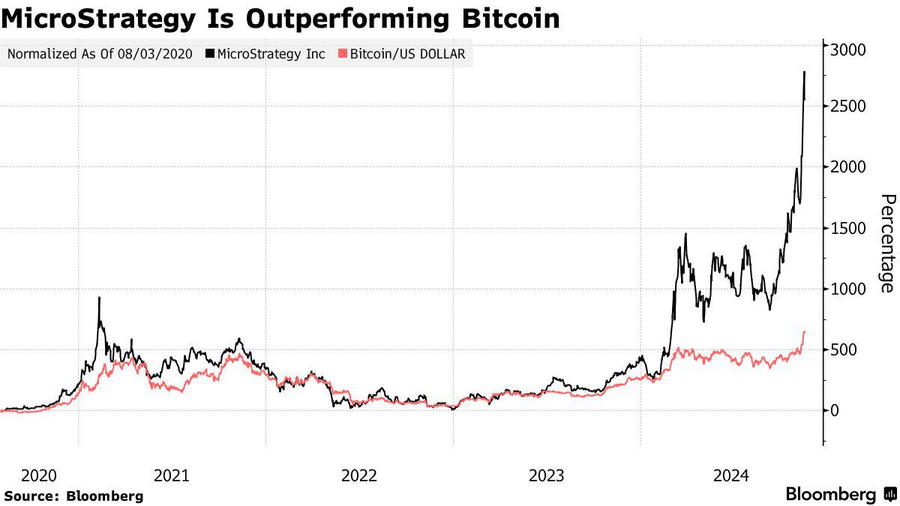 Kể từ khi MicroStrategy bắt đầu tích lũy Bitcoin, giá trị cổ phiếu của công ty đã tăng hơn 2.500%, trong khi giá Bitcoin tăng khoảng 700% từ giữa năm 2020. Đây là minh chứng rõ ràng cho sự hiệu quả của chiến lược này. Đối với nhiều nhà đầu tư, việc sở hữu cổ phiếu MicroStrategy trở thành một cách để tham gia thị trường Bitcoin mà không cần trực tiếp sở hữu hoặc quản lý tiền điện tử. Điều này giúp loại bỏ những rắc rối liên quan đến ví điện tử hoặc sàn giao dịch tiền mã hóa, đồng thời tận dụng được sự tăng trưởng bùng nổ của Bitcoin.