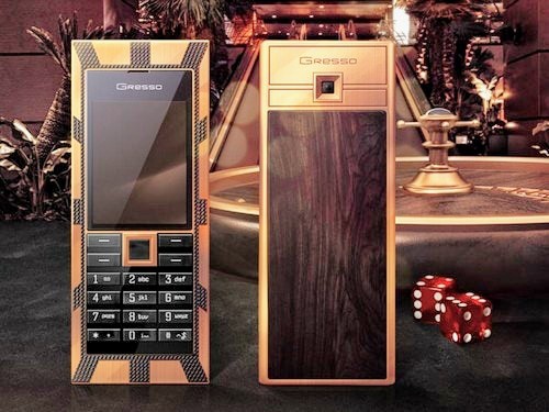 Là hãng thiết kế phụ kiện, mắt kính nổi tiếng của Thụy Sĩ nhưng Gresso vẫn sản xuất điện thoại siêu sang, một trong số đó là Luxor Las Vegas Jackpot. Điểm nhấn của thiết bị là mặt sau được ốp gỗ đen châu Phi 200 năm tuổi, mặt trước đính kim cương đen, xung quanh mạ khoảng 180 g vàng nguyên chất. Mỗi phím bấm của điện thoại được trang trí bằng một viên sapphire. Luxor Las Vegas Jackpot chỉ có 3 chiếc được sản xuất với giá một triệu USD mỗi chiếc.
