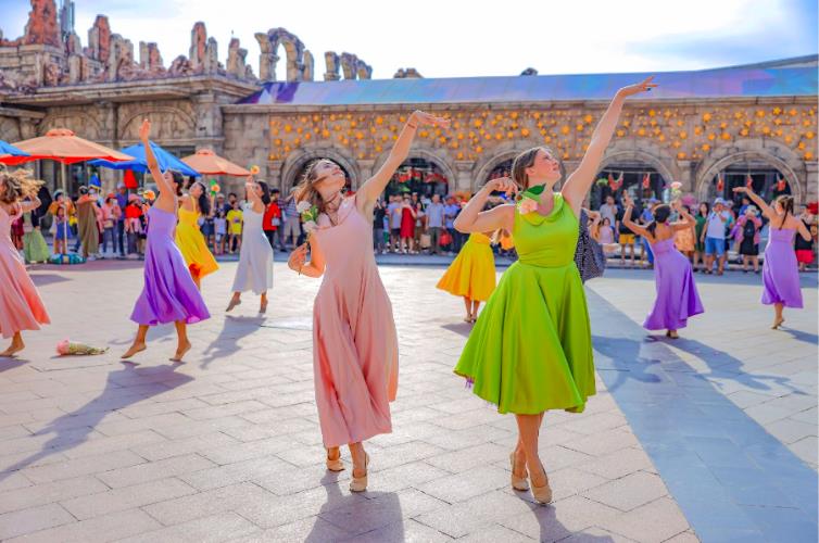 Đều đặn các dịp Lễ, Tết, người ta lại thấy những con phố rực rỡ và sôi động với những màn trình diễn từ các vũ công, nghệ sỹ quốc tế, hay những show thời trang đẳng cấp như Fashion Voyage. Mỗi ngày, Kiss The Stars -show trình diễn công nghệ đa phương tiện trên màn nước biển lớn nhất châu Á lại kể với du khách câu chuyện tình yêu đầy lãng mạn qua nghệ thuật của ánh sáng, lửa và nước.