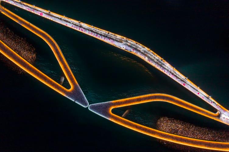 Kết cấu của cây cầu gần như là một “thách thức” với trí tưởng tượng, khi hai nhánh cầu dài 400m mềm mại vươn ra gặp nhau ở lưng chừng trời, và cách nhau 30cm – một khoảng cách vừa đủ để hai người chạm được vào nhau và trao nhau nụ hôn. Bạn Hoàng Nam (21 tuổi – Hà Nội) chia sẻ: “Hai nhánh cầu vừa giống như dải lụa mềm, vừa lại giống chiếc phi thuyền đáp xuống từ một hành tinh nào xa lạ. Ở một góc nhìn khác, hai mũi cầu lại giống như hai chú cá heo trong vũ điệu của tình yêu. Có thể nói, kiến trúc của cây cầu này thực sự kích thích trí tưởng tượng và sức sáng tạo của con người”.