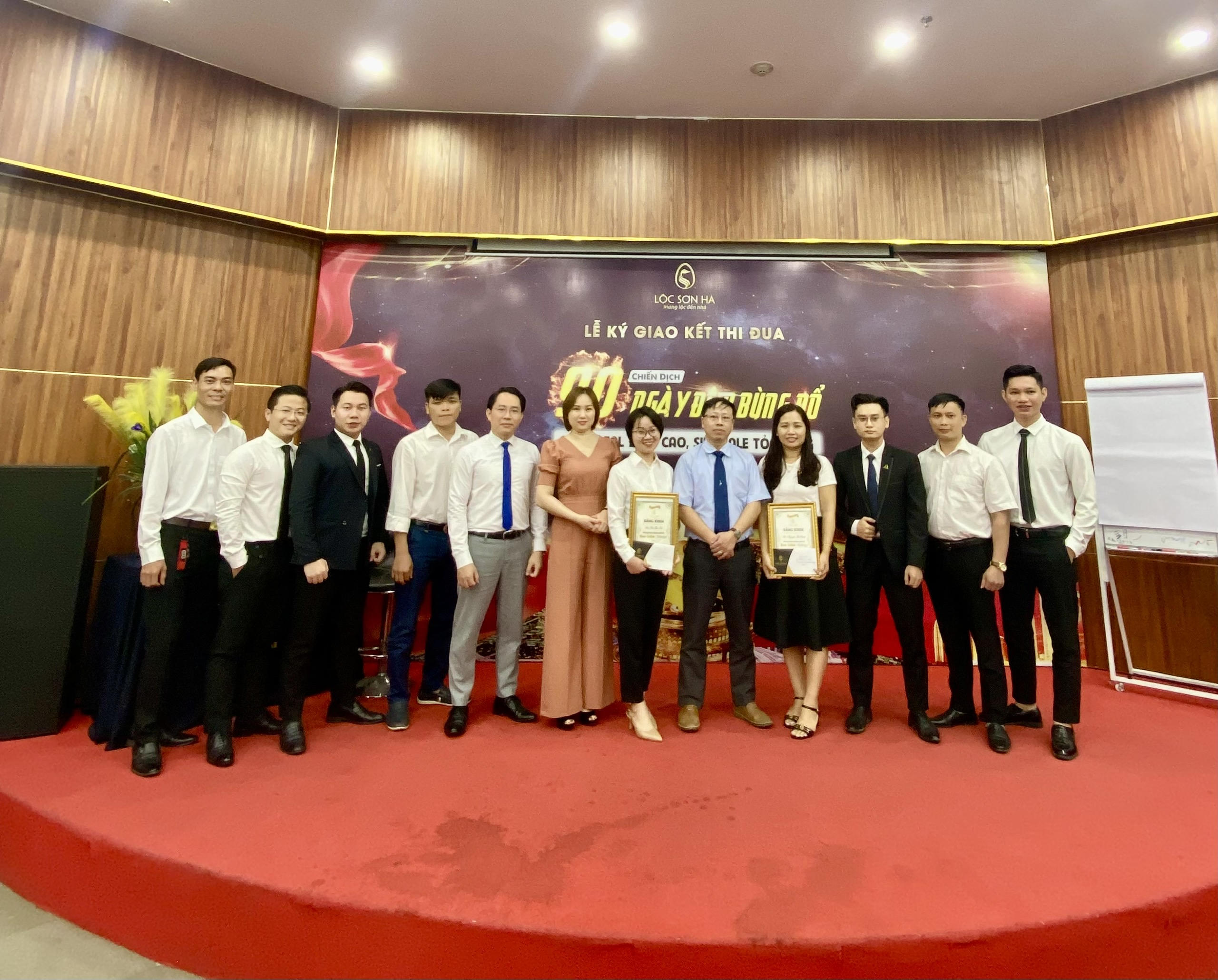 Các Giám Đốc Kinh Doanh cũng thể hiện tinh thần đoàn kết, không ngại thử thách và cam kết quyết tâm đạt được mục tiêu đã đề ra. Và với văn hóa của Lộc Sơn Hà, đội ngũ chiến binh không chỉ hoàn thành mục tiêu mà còn sẵn sàng “xuyên đích”.