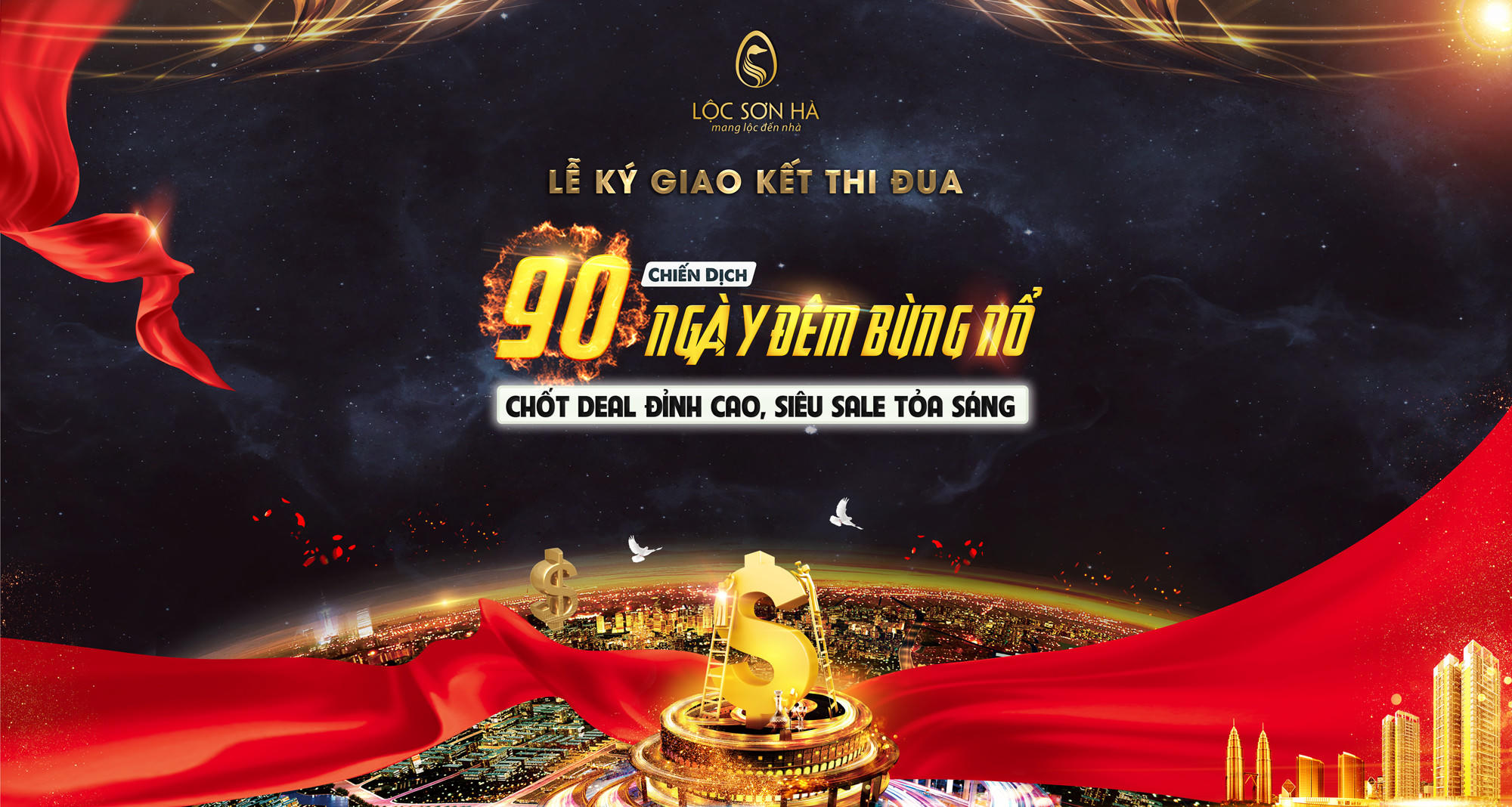 Với mục đích lan tỏa và nâng cao tinh thần làm việc không ngừng nghỉ của các chiến binh, Lộc Sơn Hà Land phát động chiến dịch:“90 ngày đêm bùng nổ”-Chốt deal đỉnh cao, siêu sale tỏa sáng.