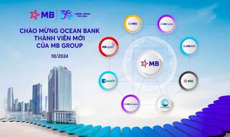 Ngày 17/10/2024, Ngân hàng TMCP Quân đội (MB) chính thức nhận Ngân hàng TM TNHH MTV Đại Dương (OceanBank) trở thành một thành viên mới. Đây là dấu mốc quan trọng của MB trước thềm kỷ niệm 30 năm thành lập, mang lại cơ hội mở rộng hoạt động, triển khai các mô hình kinh doanh mới cho MB và OceanBank, đồng thời đảm bảo an toàn hệ thống, đảm bảo quyền lợi khách hàng của OceanBank và góp phần ổn định kinh tế vĩ mô.