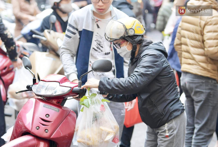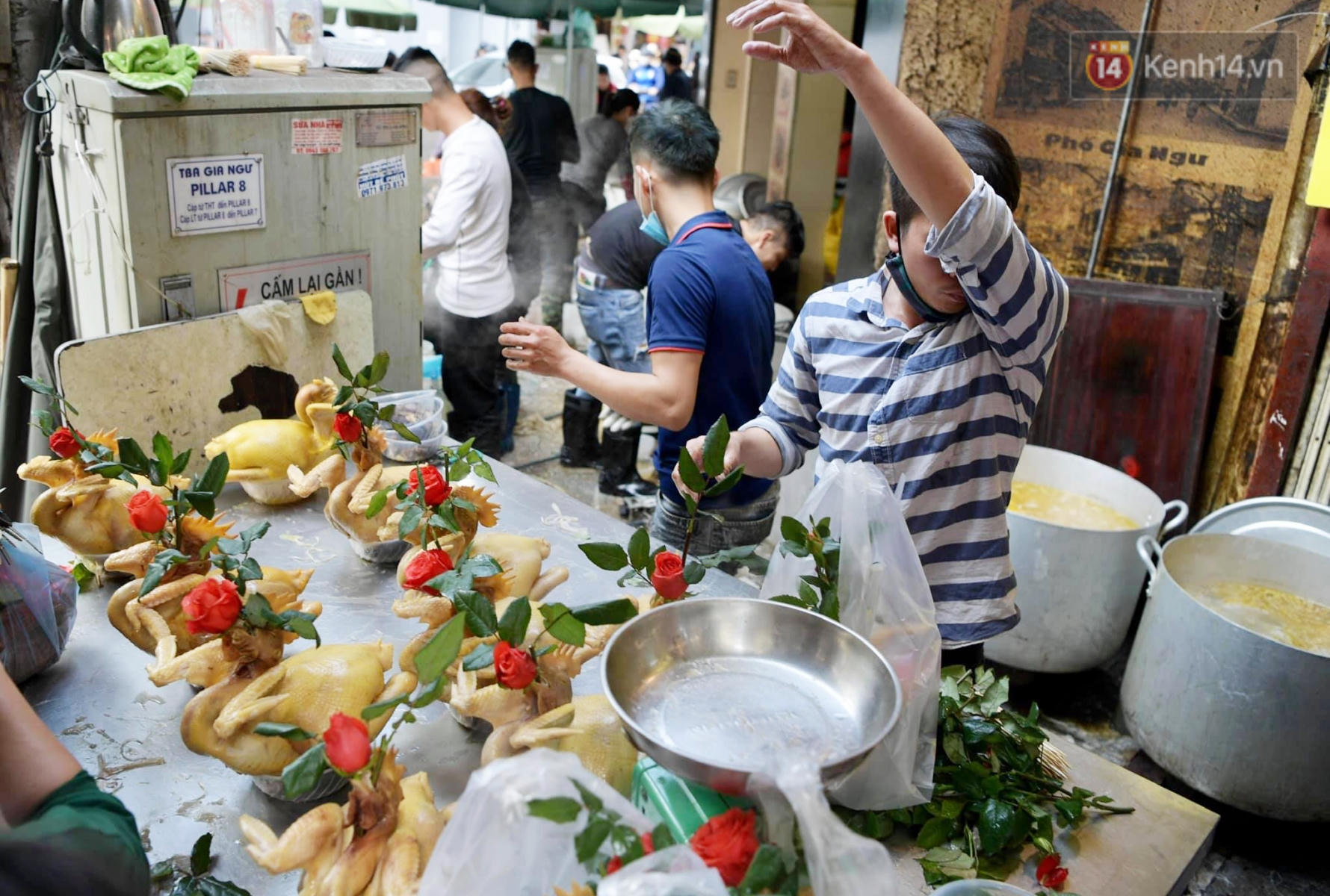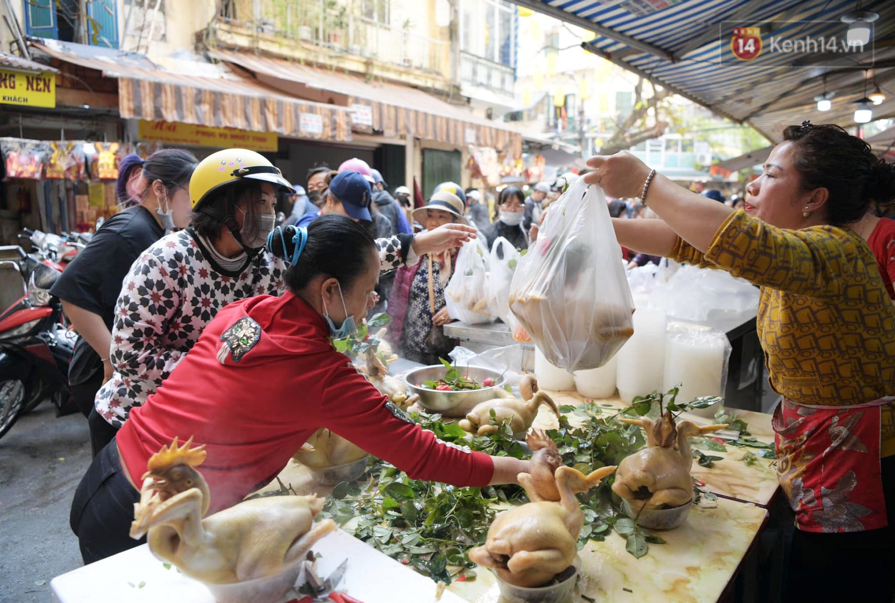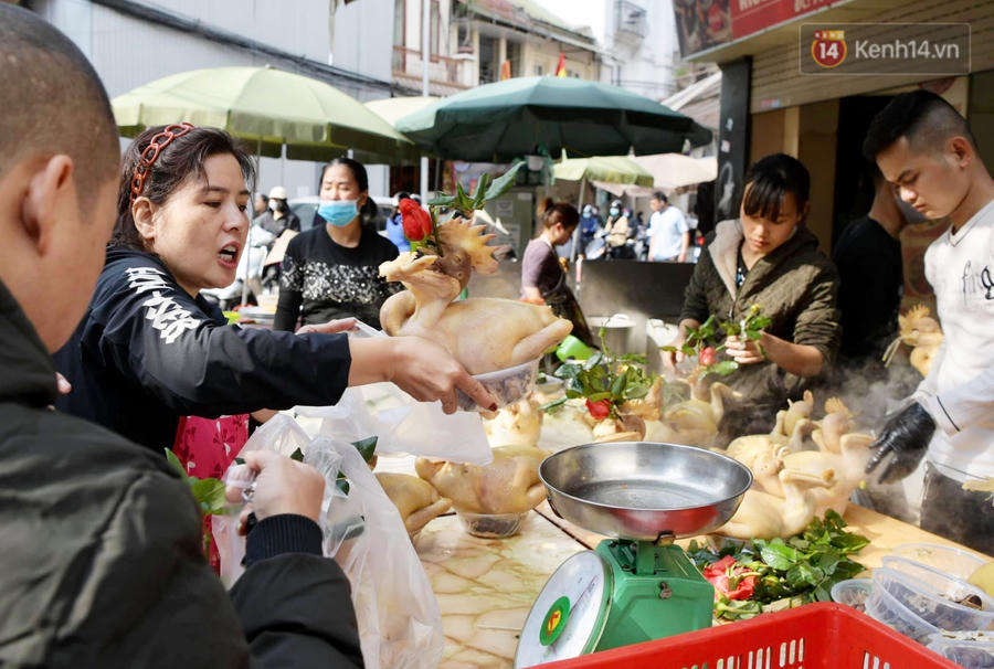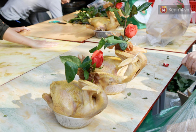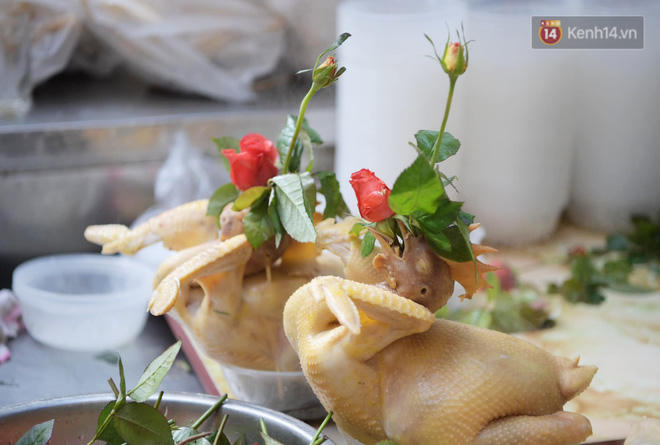 Sáng 30 Tết chợ Hàng Bè, phố Gia Ngư tại Hà Nội đã ùn tắc từ sớm, các cửa hàng bán gà ngậm hoa hồng để cúng khá đắt hàng và có nhiều lúc người mua phải tranh nhau để nhận hàng đã đặt trước