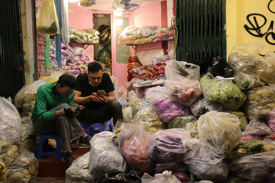 Năm nay là thời điểm khó khăn với nhiều người buôn bán đồ trang trí vì Covid-19 bùng phát đúng đợt cận Tết Nguyên Đán. Anh Trần Kiệt, một người buôn bán lâu năm trên phố Hàng Mã cho biết: “Mọi năm chợ bắt đầu đông từ ngày 20 Âm lịch, nhưng giờ có khi ngồi cả ngày cũng không thấy khách”.