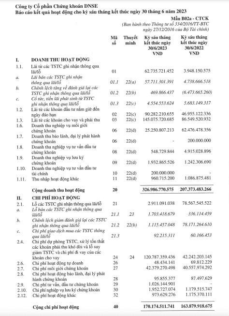 Về tình hình kinh doanh, theo báo cáo hợp nhất giữa niên độ 2023, Công ty Chứng khoán DNSE ghi nhận doanh thu hoạt động đạt 326,9 tỷ đồng, tăng 57,6% so với cùng kỳ.