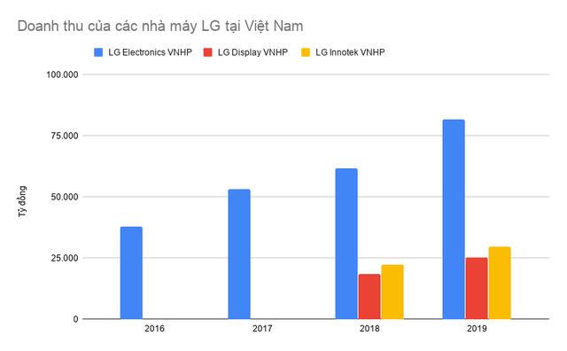 Năm 2019, LG Innotek Hải Phòng đạt hơn 29.600 tỷ đồng doanh thu, lãi ròng 1.600 tỷ đồng. Trong khi đó, LG Display Hải Phòng thu về hơn 25.100 doanh thu, lỗ sau thuế hơn 5.000 tỷ đồng.