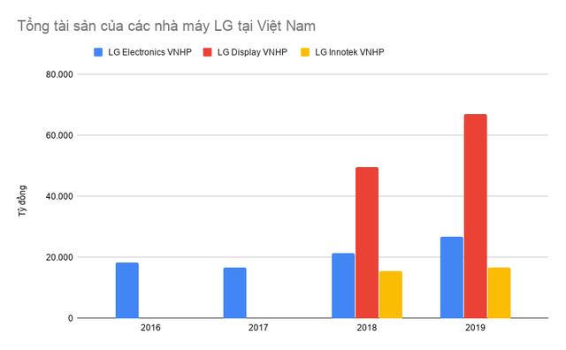 Cả LG Display Hải Phòng và LG Innotek Hải Phòng cùng ra thông báo tăng thêm 500 triệu USD cho mỗi dự án vào giữa năm 2018. Số liệu ghi nhận về tổng tài sản của ba dự án hàng đầu của LG tại Việt Nam cũng cho thấy mức tăng trưởng kéo theo.