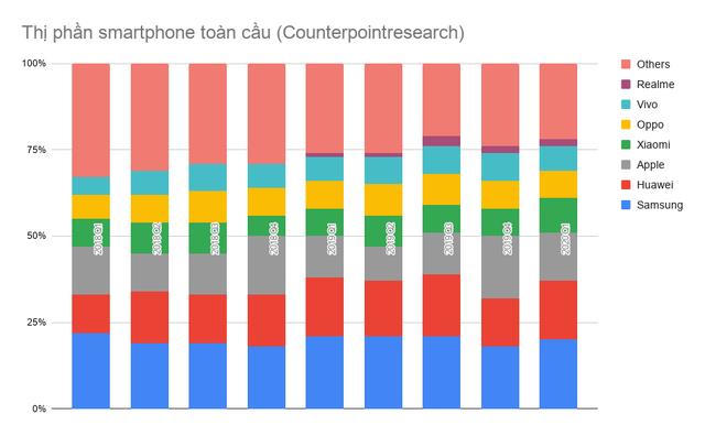 Bị kẹp giữa Samsung và Apple ở phân khúc smartphone cao cấp, trong khi đó các đối thủ Trung Quốc (Huawei, Xiaomi, Oppo, Vivo…) vươn lên mạnh mẽ với phân khúc thấp, điều này làm cho thị phần của LG sụt giảm nhanh chóng. Từ cuối năm 2017, LG đã bay khỏi danh sách những nhà sản xuất điện thoại di động top đầu thế giới.