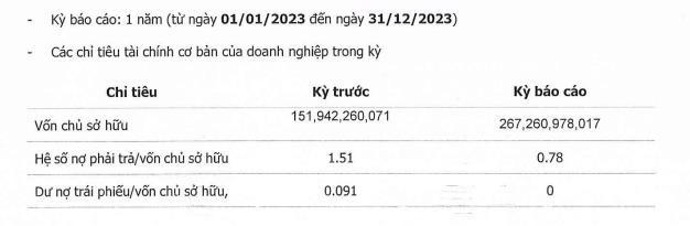 Hệ số nợ phải trả/vốn chủ sở hữu có xu hướng giảm, lùi từ 1,51 về mức 0,78 lần ở cuối năm 2023.