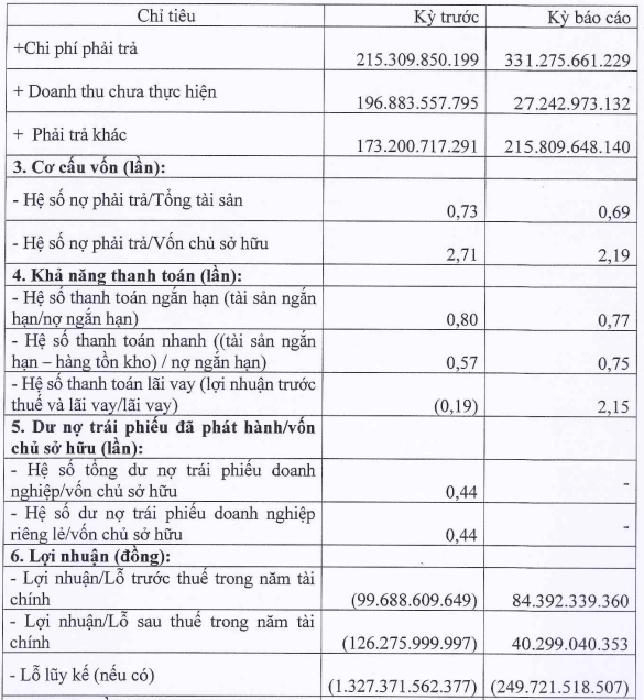 Ngoài ra, bảng công bố còn cho biết, vốn chủ sở hữu của công ty là 454,3 tỷ đồng so với gần 454 tỷ đồng ở kỳ báo cáo trước. Trong đó, vốn góp chủ sở hữu là 325 tỷ đồng, thặng dư vốn cổ phần là 147,7 tỷ đồng.
