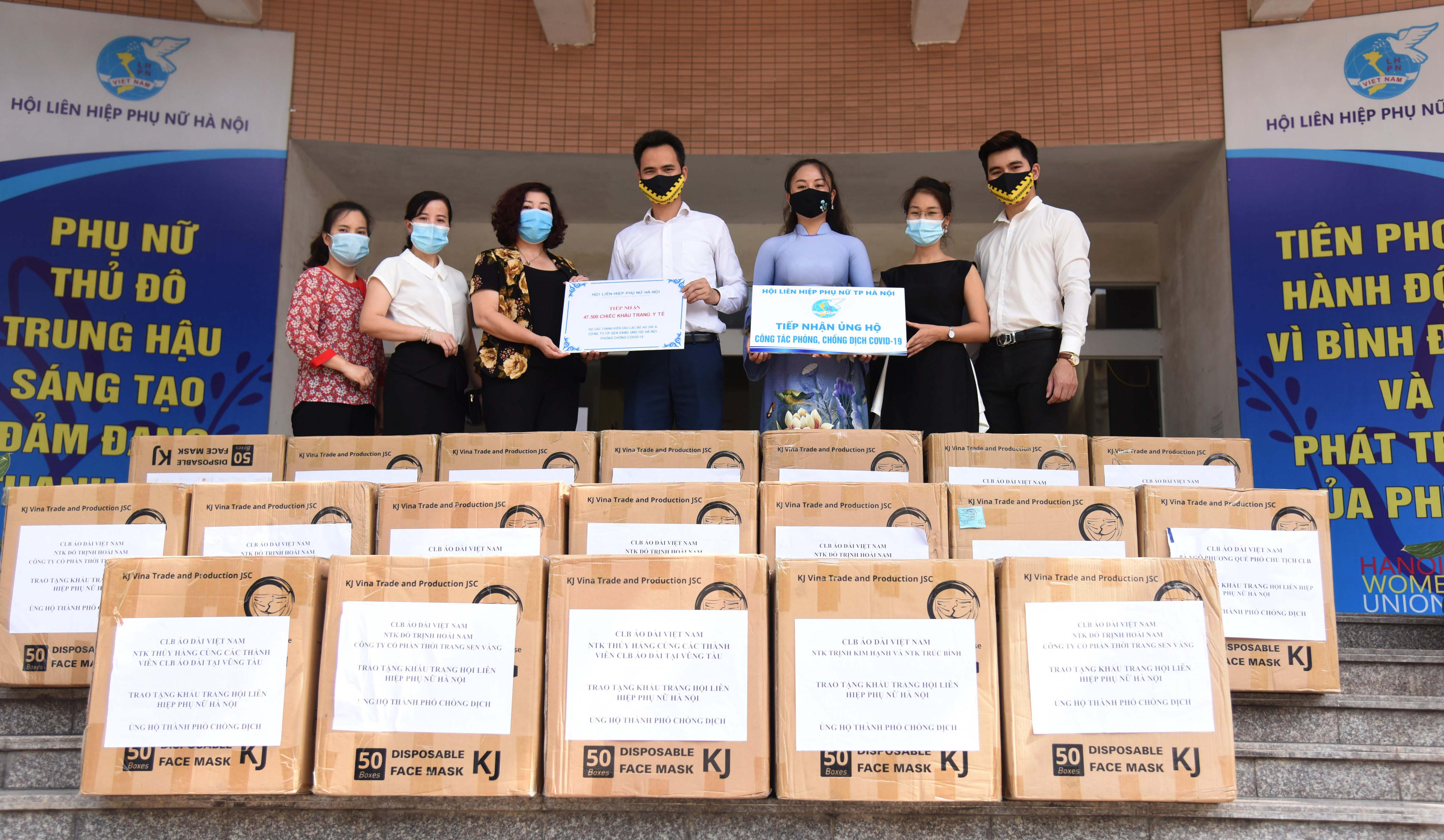 Nhà thiết kế (NTK) Đỗ Trịnh Hoài Nam, CLB Áo dài Việt Nam ( CLBAD VN) cùng Công ty Sen vàng và nhiều cá nhân dành tặng 67.500 chiếc khẩu trang ủng hộ Hà Nội chống dịch Covid-19.