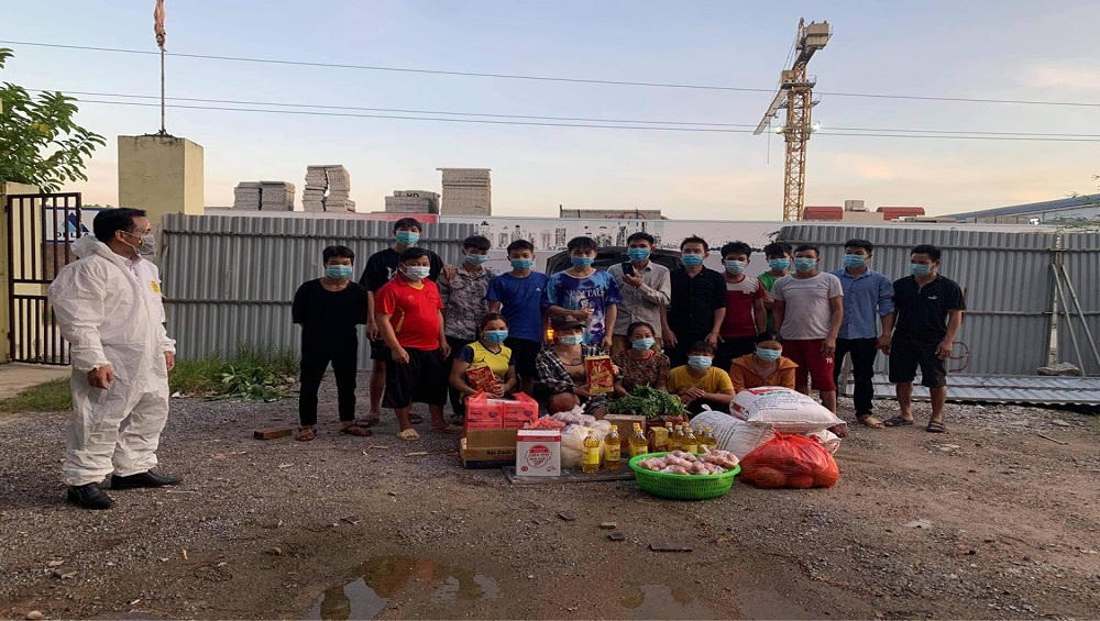 Nhận được món quà từ đoàn thiện nguyện, một người lao động nghèo của tỉnh Yên Bái đang bị mắc kẹt tại 1 công trình ở khu Tân Mai, Hoàng Mai xúc động chia sẻ: Chúng tôi cảm ơn đoàn lắm vì có sự chia sẻ kịp thời. 2 tháng qua chúng tôi không nhận được lương, muốn về nhà cũng không được vì tiền không có, xe không có, hiện phải ở tại công trình. Rằm tháng 7 không có đồ ăn, hôm nay mùng 2/9 Tết Độc lập chúng tôi có đồ ăn rồi nên vui lắm.
