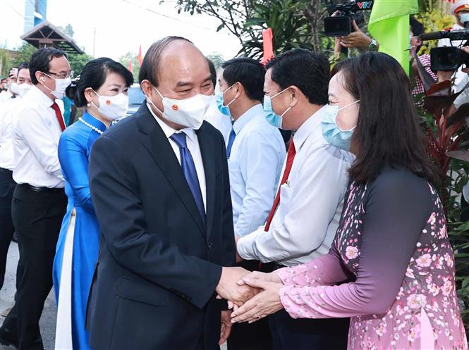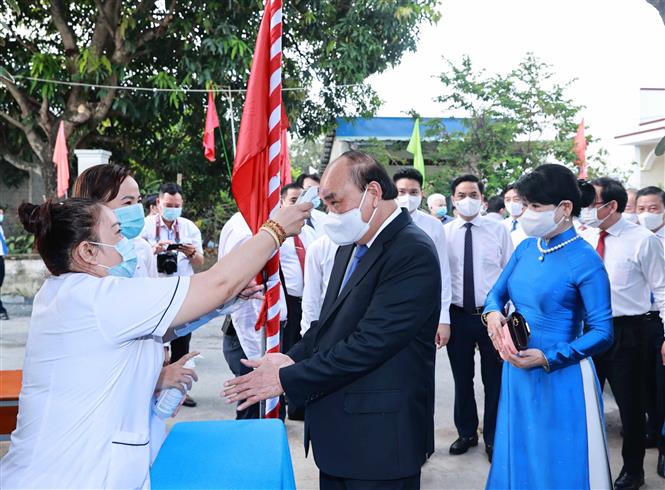 Trong không khí hân hoan của Ngày hội non sông – toàn dân đi bầu cử, đúng 7h sáng ngày 23/5, Chủ tịch nước Nguyễn Xuân Phúc cùng Phu nhân và các cử tri khu vực bỏ phiếu 041, đơn vị bầu cử số 9 (thị trấn Củ Chi, huyện Củ Chi, TP HCM) đã bỏ những lá phiếu bầu đại biểu Quốc hội khóa XV và đại biểu HĐND nhiệm kỳ 2021-2026. Cùng tham gia bỏ phiếu tại đây có Ủy viên Bộ Chính trị, Bí thư Thành ủy TP HCM Nguyễn Văn Nên.