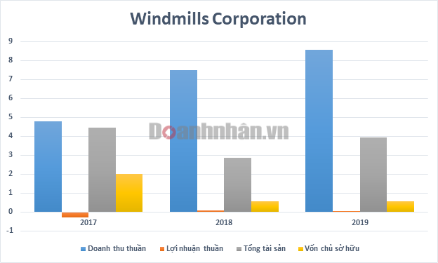 Đặc biệt, quy mô của Windmills Corporation lại có dấu hiệu thu hẹp dần khi tổng tài sản đến cuối năm 2019 chỉ còn 3,93 tỷ đồng, trong khi con số này cuối năm 2017 là 4,45 tỷ đồng. Vốn chủ sở hữu cũng bị giảm từ 2 tỷ đồng xuống 574 triệu đồng từ năm 2018 và chưa có động thái nâng vốn cho đến hết năm ngoái.