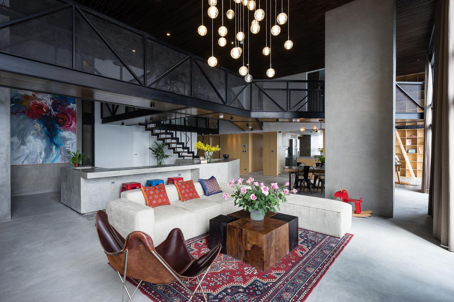 Thấu hiểu tâm tư của gia chủ là mong muốn có không gian sống tiện ích nhưng phải mang lại cảm giác tự do, phóng khoáng, kiến trúc sư đã nảy ra ý tưởng thiết kế căn hộ theo phong cách industrial không thuần túy.