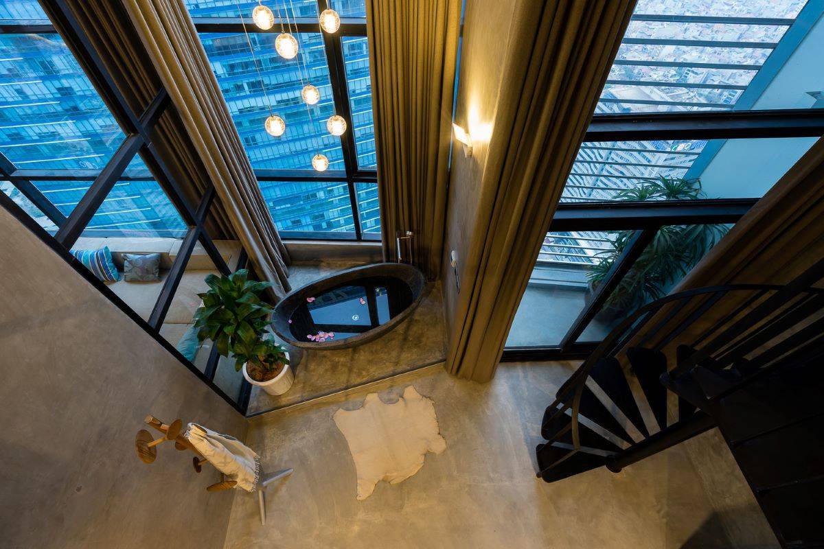 Căn hộ được thiết kế 2 tầng, “mặt tiền” hướng Nam, hội tụ đầy đủ yếu tố để ngắm trọn toàn bộ phong cảnh thành phố.
