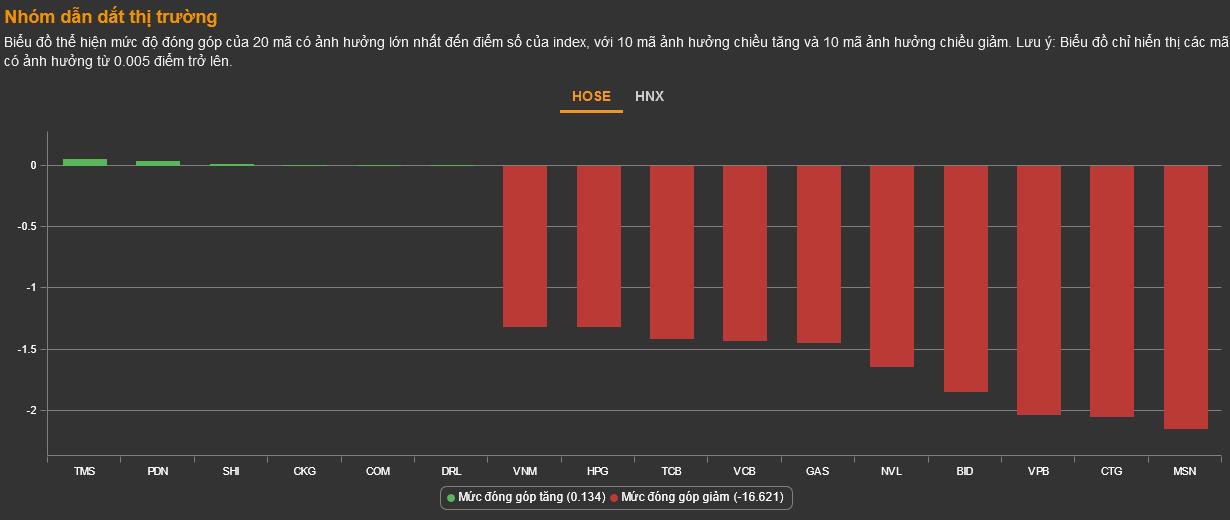 Các mã bluechip tiếp tục lao dốc khiến đà giảm của VN-Index càng trầm trọng hơn.