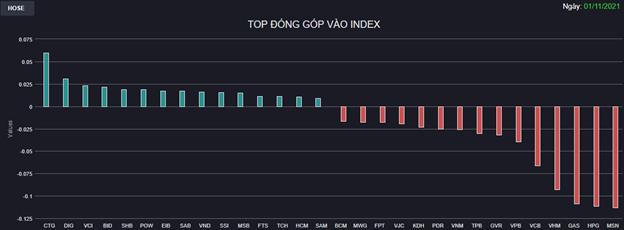 Chứng khoán 1/11: Hàng loạt Bluechips bị chốt lời mạnh, VN-Index quay đầu giảm điểm với thanh khoản bùng nổ
