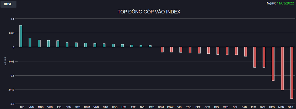 Chứng khoán thế giới tăng giảm thất thường do câu chuyện của chiến sự tại Ukraine và thị trường Việt Nam cũng không ngoại lệ tuy nhiên với biên độ dao động hẹp hơn. Lo ngại những thông tin tiêu cực có thể xuất hiện vào cuối tuần, lực bán đã sớm chiếm ưu thế và dần dần lan rộng.