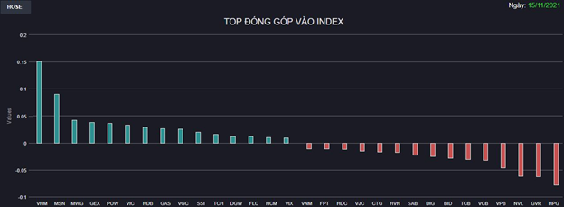 Trong nhóm vốn hóa lớn, VHM nhận được thêm sự hỗ trợ đến từ MSN, GAS tuy nhiên cũng chưa đủ thay đổi hoàn toàn cục diện giằng co. Nhiều trụ hạng nặng như HPG, GVR, NVL và các Ngân hàng VPB, VCB, TCB, BID vẫn chưa thoát nhịp điều chỉnh khiến chỉ số khó bứt phá.