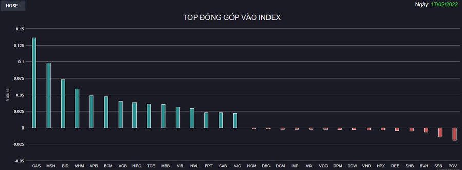 Phiên đáo hạn phái sinh tháng 2 khởi đầu với cục diện khá giằng co do VN-Index chịu áp lực bán khá mạnh khi đến gần ngưỡng 1.500 điểm. Tuy nhiên, thế trận đã thay đổi nghiên hoàn toàn về bên mua trong phiên chiều nhờ lực kéo từ nhóm vốn hóa lớn như GAS, MSN, VHM, HPG, NVL, PLX, VIC...