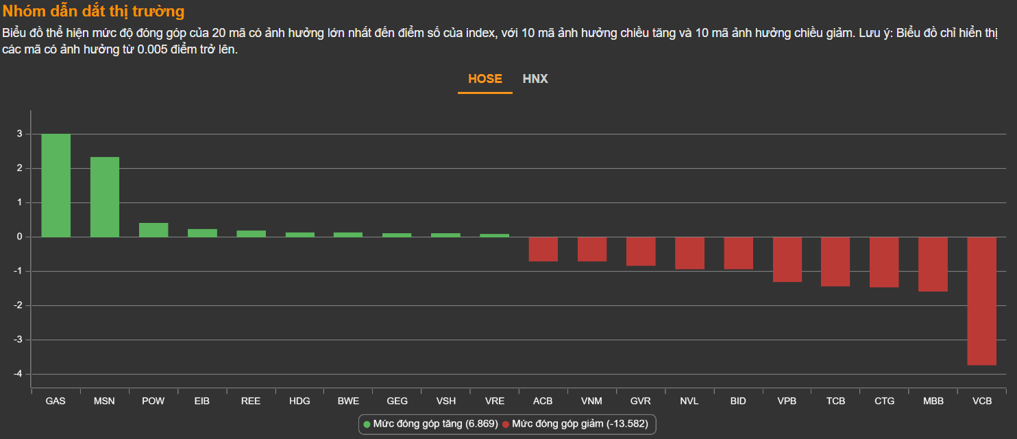 Dầu khí và điện tiếp tục là động lực dẫn dắt VN-Index trong khi nhóm "bank, chứng, thép" vẫn bị bán mạnh.