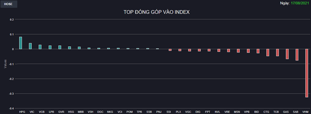 Chứng khoán 17/8: Gánh nặng VHM vẫn đeo bám, VN-Index quay đầu giảm gần 8 điểm