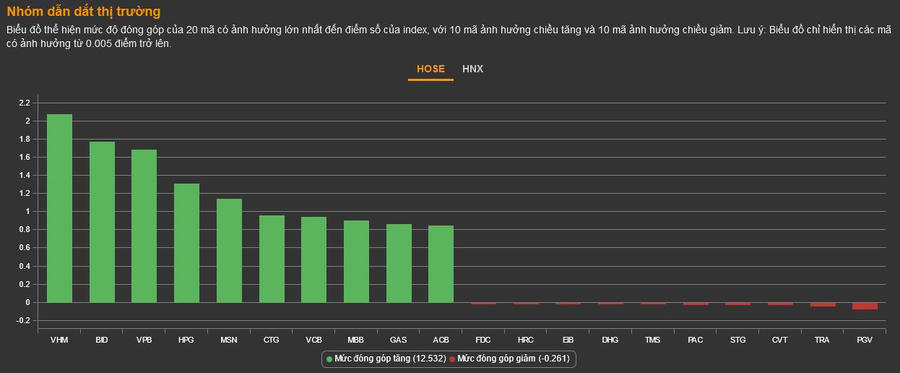 Các trụ cột ngân hàng cũng làm tốt vai trò dẫn dắt, trong đó: VCB (+0,86%), BID (+3,06%), CTG (+2,7%), VPB (+5,78%), TCB (+2,88%), ACB (+4,03%), MBB (+4,42%), SSB (+1,1%), STB (+5,33%), HDB (+1,9%)...