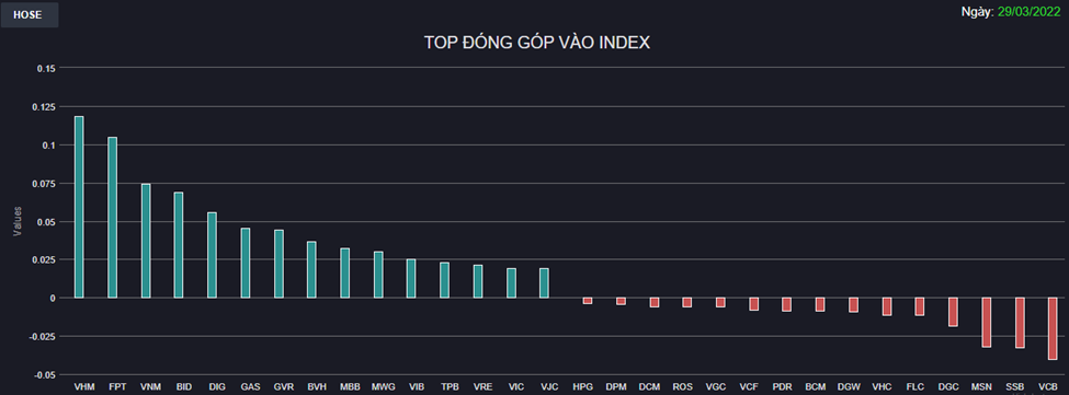 Chứng khoán 29/3: Bluechips đồng thuận kéo, VN-Index lấy lại những gì đã mất phiên đầu tuần