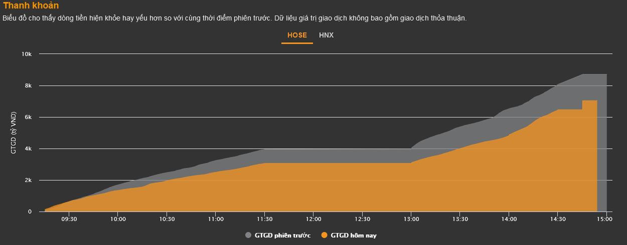 Kết thúc phiên giao dịch, chỉ số VN-Index giảm 3,38 điểm (-0,33%) xuống 1.019,81 điểm. HNX-Index và UPCOM-Index giảm lần lượt 0,44% và 0,46% còn 210,74 và 75,68 điểm. Thanh khoản lao dốc gần 2.500 tỷ, chỉ còn 8.669 tỷ đồng.