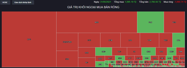 Khối ngoại tranh thủ bán ròng gần 1.700 tỷ đồng trên HoSE với tâm điểm HPG, MBB bên cạnh các Bluechips như VIC, VHM, VRE, HCM cùng loạt ngân hàng VCB, CTG, STB, HDB, LPB và FUEVFVND. Dù vậy, lượng bán ra gần như đã được dòng tiền trong nước hấp thụ hết.