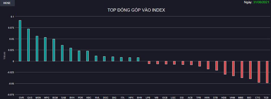 Các cổ phiếu vốn hóa lớn như GVR, GAS, MSN, HPG, BCM, SAB, BVH,... diễn biến khởi sắc có thời điểm đã tạo được mức tăng khá tốt. Tuy nhiên, lực bán gia tăng mạnh trong nửa sau phiên chiều đã kéo VN-Index lùi về sát 1.330 điểm.