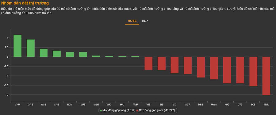 Toàn thị trường có 14 mã tăng trần, 140 mã tăng giá, 783 mã đứng giá, 453 mã giảm giá và 224 mã giảm sàn. Khối ngoại là điểm sáng hiếm hoi khi mua ròng 521 tỷ đồng trên HOSE, tập trung vào các mã MBB, HPG, VNM, VCB, DGC.