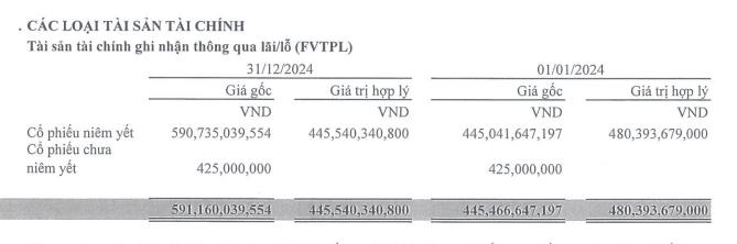 Ở bảng cân đối kế toán, các tài sản tài chính FVTPL của APG chủ yếu là cổ phiếu niêm yết với giá trị hợp lý gần 446 tỷ đồng, thấp hơn giá gốc ghi nhận ở 590,7 tỷ đồng.