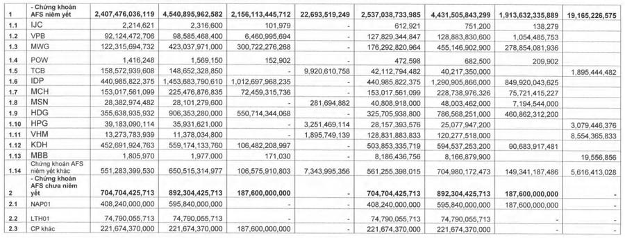 Ngoài ra, Chứng khoán Bản Việt cũng nắm giữ một lượng lớn cổ phiếu MWG, HDG, KDH, TCB,... Theo lãnh đạo VCSC, công ty đặt mục tiêu không bán quá 10% danh mục AFS trong năm 2022 nhằm đảm bảo chiến lược đầu tư dài hạn.
