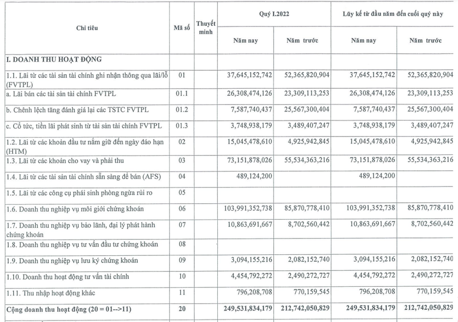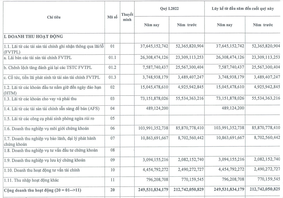 Nghiệp vụ môi giới chứng khoán tiếp tục là mảng kinh doanh chủ đạo tại BVS khi mang về 103,9 tỷ, tăng 21% so với quý I/2021. Lãi từ các khoản cho vay và phải thu cũng tăng 33% lên 73 tỷ đồng. Tổng doanh thu hoạt động tăng 17% lên 249 tỷ đồng.