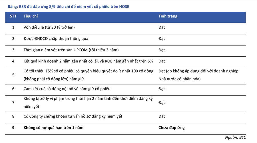 Liên quan đến việc chuyển sàn của BSR, các chuyên gia BSC cho rằng, vào tháng 2 năm 2024, BSR đã làm thủ tục.