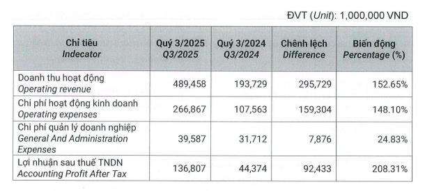 Về kết quả kinh doanh, trong quý III/2025, doanh thu DSE ghi nhận đạt 489,4 tỷ đồng, tăng gần 153% so với cùng kỳ năm trước, chủ yếu đến từ Doanh thu nghiệp vụ môi giới chứng khoán tăng 123 tỷ đồng, tương ứng tăng 372%.
