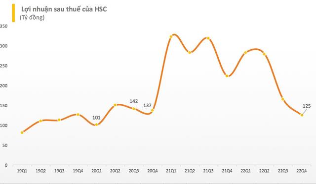 Chứng khoán HSC (HCM) báo lãi quý 4/2022 giảm 44% so với cùng kỳ, thấp nhất trong vòng 11 quý trở lại