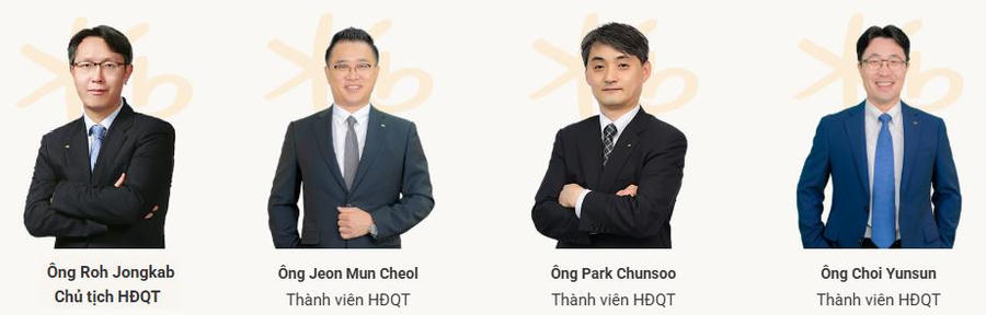 Như vậy, hiện HĐQT KBSV có 4 thành viên, gồm ông Roh Jongkab (Chủ tịch), ông Jeon Mun Cheol (Tổng Giám đốc), ông Choi Yunsun và ông Park Chunsoo, toàn bộ là người Hàn Quốc.