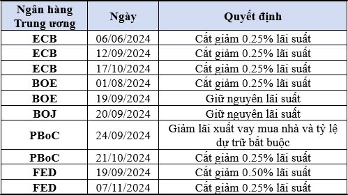 Đầu tiên, chứng khoán KIS cho rằng chính sách nới lỏng tiền tệ từ các ngân hàng Trung ương lớn sẽ có tác động tích cực. Cụ thể, tháng 9/2024 đánh dấu giai đoạn quan trọng với chính sách tiền tệ toàn cầu khi hàng loạt ngân hàng Trung ương lớn như FED, ECB, BoE và PBoC đồng loạt nới lỏng chính sách tiền tệ khi FED bất ngờ giảm lãi suất 0.50%, lần đầu tiên sau hơn 4 năm, để hỗ trợ kinh tế Mỹ trước dấu hiệu tăng trưởng việc làm suy yếu. ECB và BoE cũng cắt giảm lãi suất, trong khi PBoC giảm tỷ lệ dự trữ bắt buộc và lãi suất vay mua nhà nhằm thúc đẩy kinh tế. Điều này làm giảm đáng kể chênh lệch lãi suất giữa Việt Nam và các nước, giúp tỷ giá ổn định hơn.
