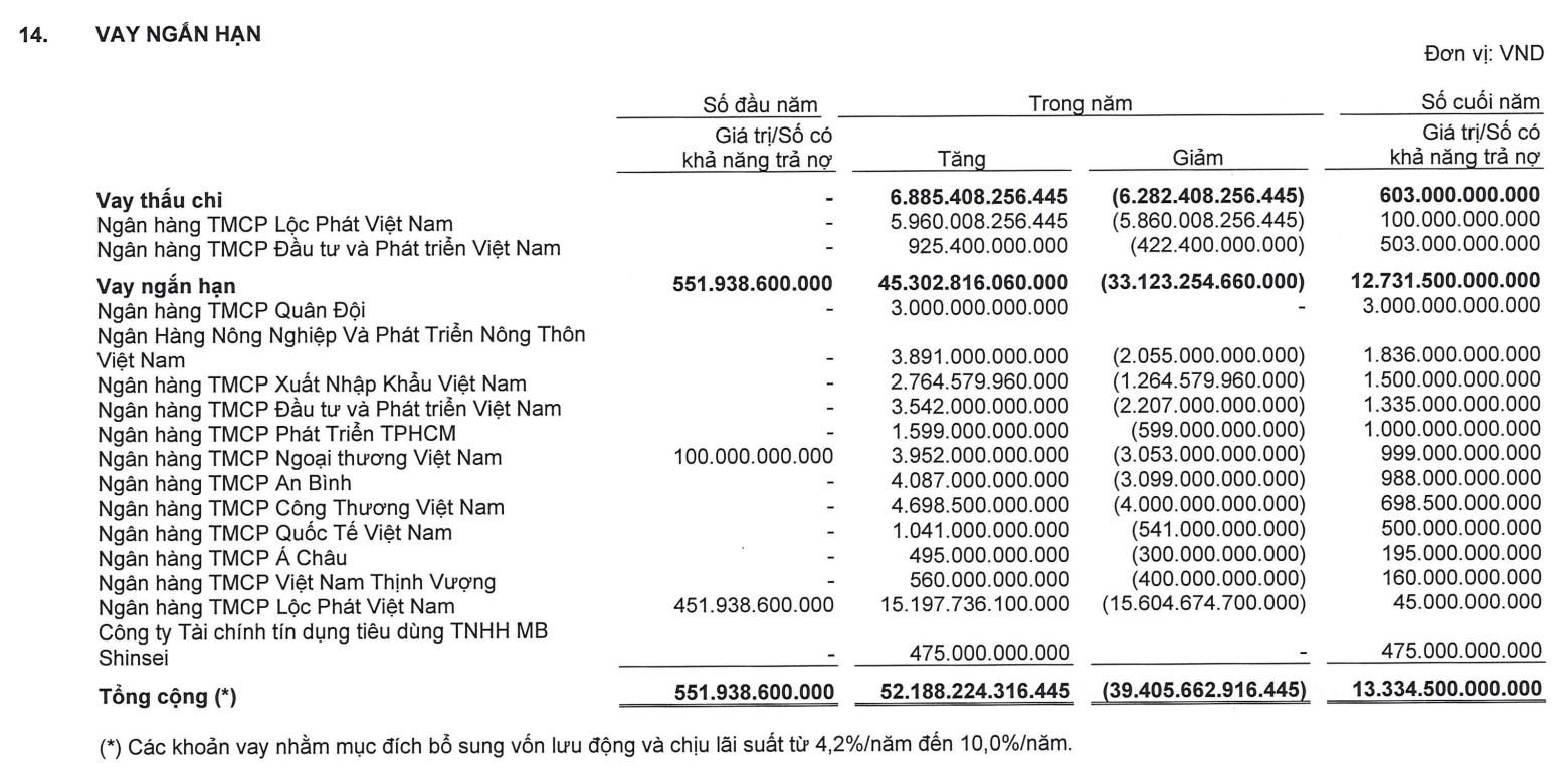 Tính tới cuối năm 2025, LPBS đang vay ngắn hạn gần 13.335 tỷ đồng trong đó lớn nhất là MBBank (3.000 tỷ đồng), Agribank (1.836 tỷ đồng), BIDV (1.838 tỷ đồng), Eximbank (1.500 tỷ đồng), HDBank (1.000 tỷ đồng). Những ngân hàng khác có quy mô cho vay dưới 1.000 tỷ đồng.