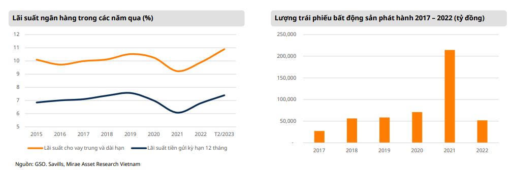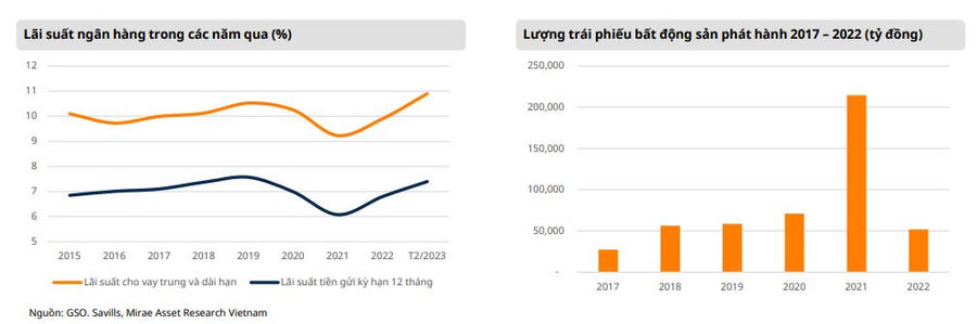 Ngoài ra, lãi suất tăng cao gây áp lực lớn cho người mua nhà và chủ đầu tư. Bởi lãi suất trong hai năm vừa qua đã liên tục tăng mạnh do chịu áp lực từ các yếu tố vĩ mô, và hiện nay đang dao động trên mức 10%/năm, cao nhất kể từ 2015.