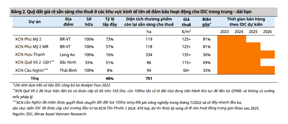 Mirae Asset cho rằng, các khu công nghiệp Phú Mỹ 2 và Phú Mỹ 2 mở rộng vẫn sẽ là động lực chính cho kết quả kinh doanh của IDICO, kết hợp với đó là tiềm năng doanh thu từ khu công nghiệp Hựu Thạnh.