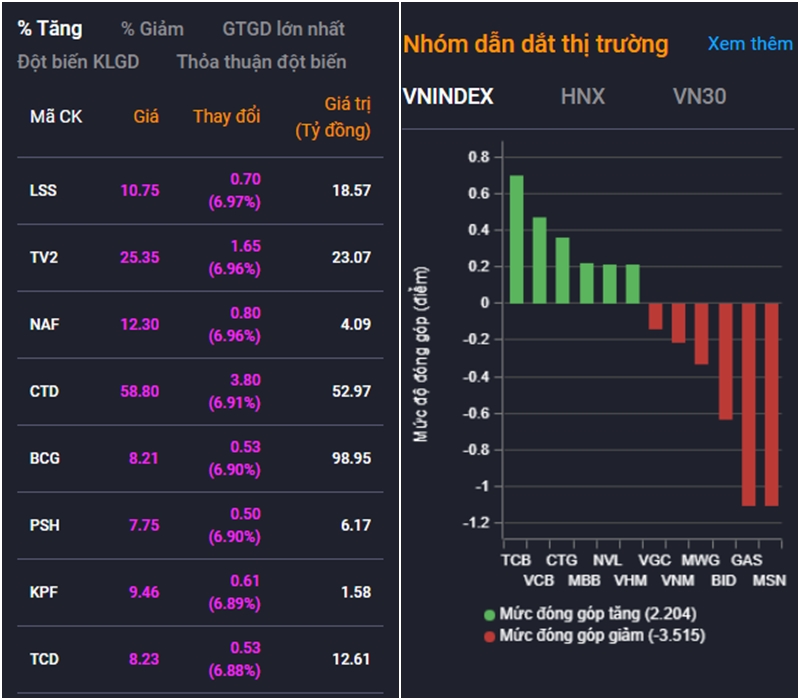 Ngược lại, các ngành bán lẻ, chế biến thủy sản, nông lâm ngư, thực phẩm đồ uống… ghi nhận sắc đỏ trên diện rộng.