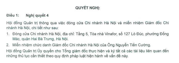 Cụ thể, PHS thông báo sẽ chấm dứt hoạt động của Chi nhánh Hà Nội, có địa chỉ tại tầng 5, tòa nhà Vinafor, số 127 Lò Đúc, phường Đống Mác, quận Hai Bà Trưng, Hà Nội. Đồng thời, ông Nguyễn Tiến Cường, Giám đốc Chi nhánh Hà Nội, sẽ thôi đảm nhiệm chức vụ này.